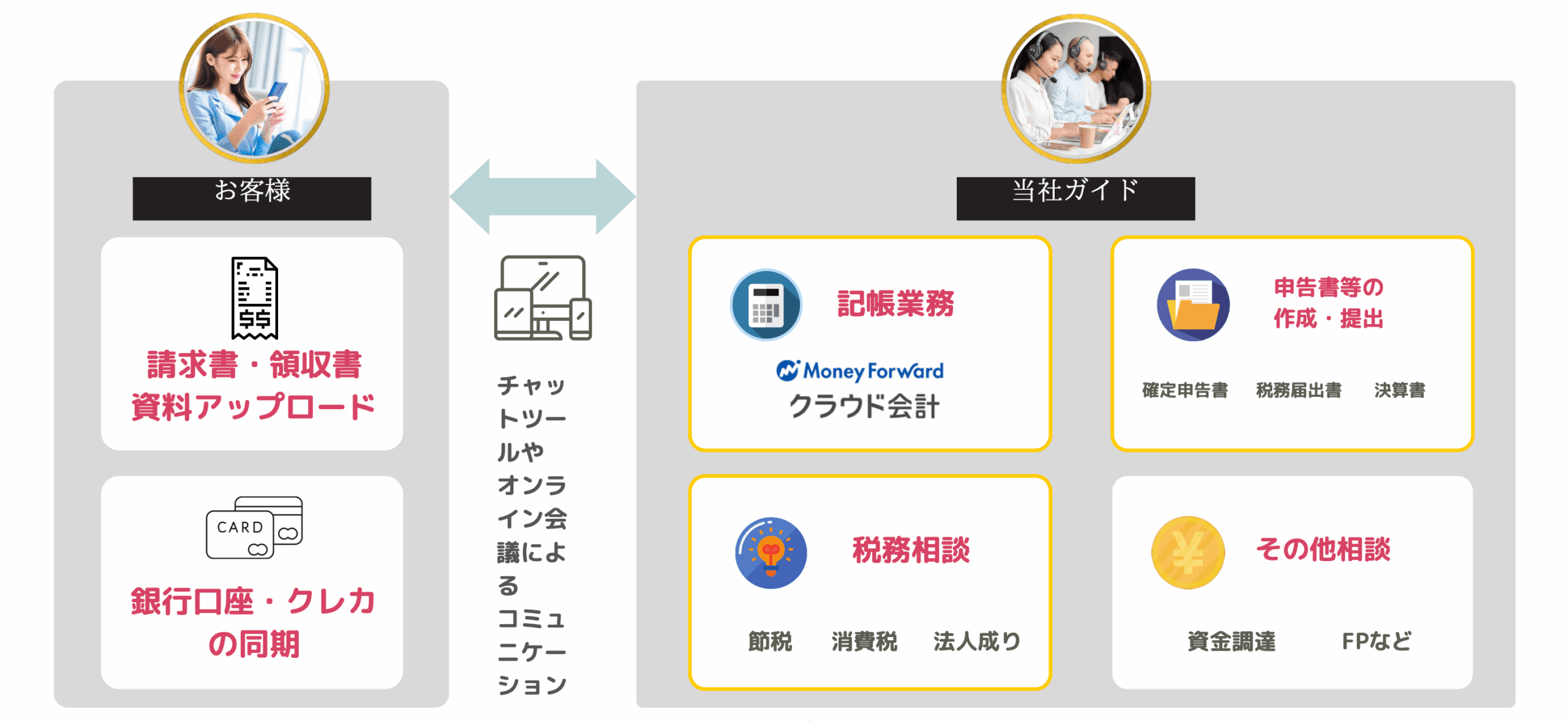 経理のガイドは、個人事業主のための完全オンライン型の経理顧問サービスです。